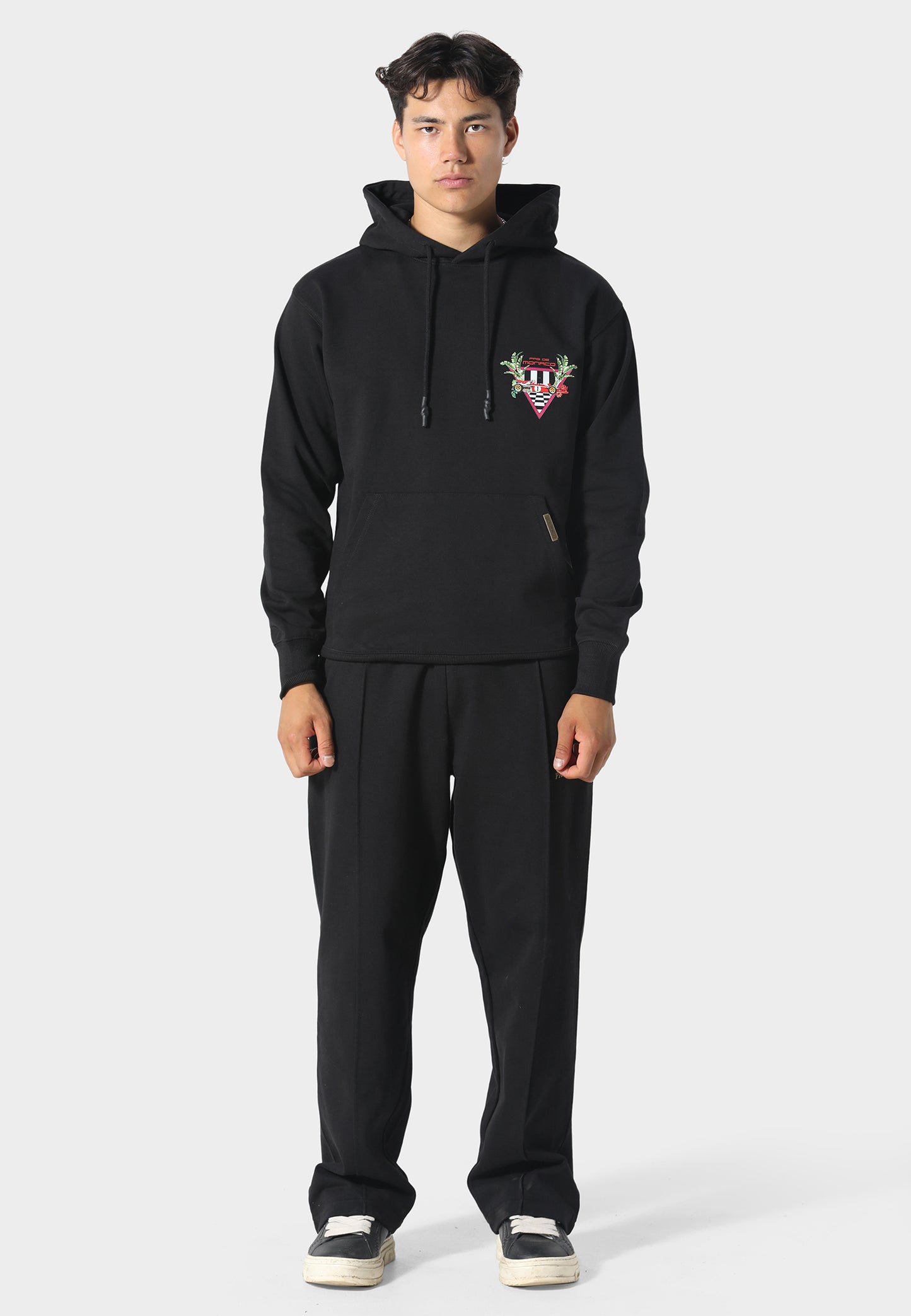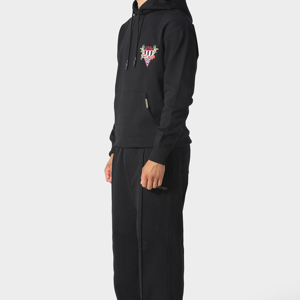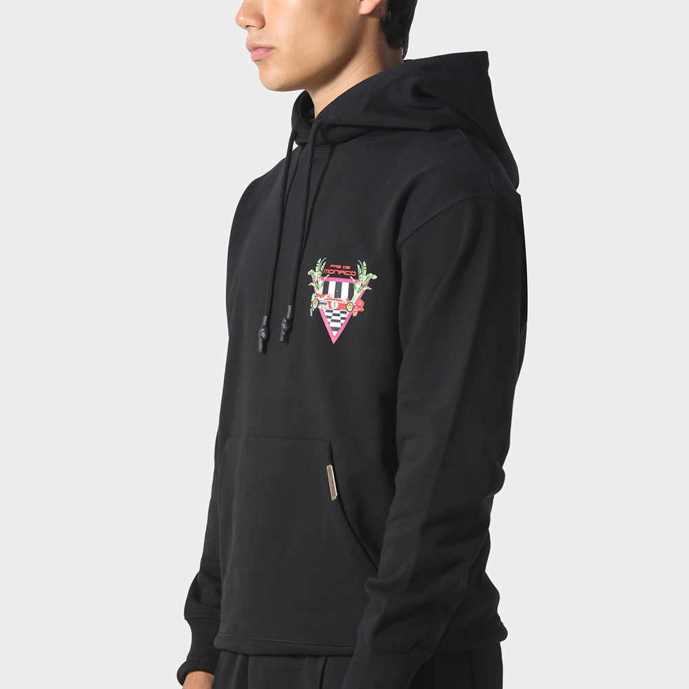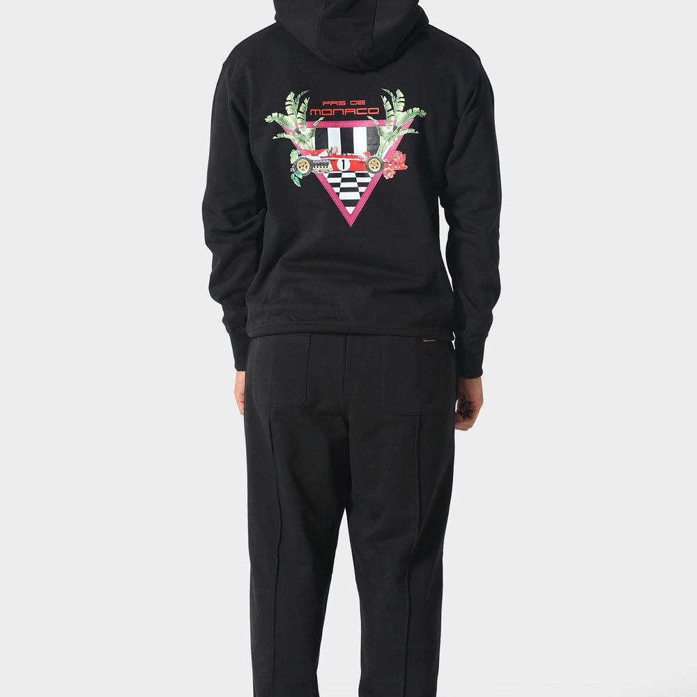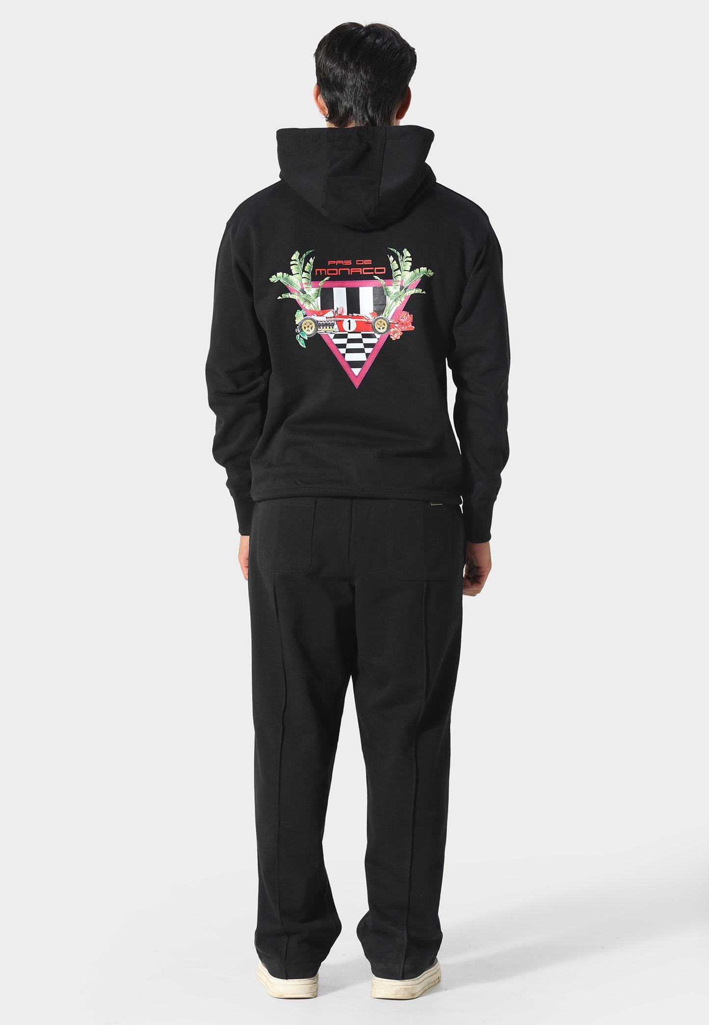 Crafted from premium 450 GSM loopback cotton, the Formular Check Hoodie features bold screen-printed graphics front and back — a vintage race car framed by tropical foliage and a checkerboard crest. A statement piece with a structured silhouette and vibrant motorsport-inspired artwork.