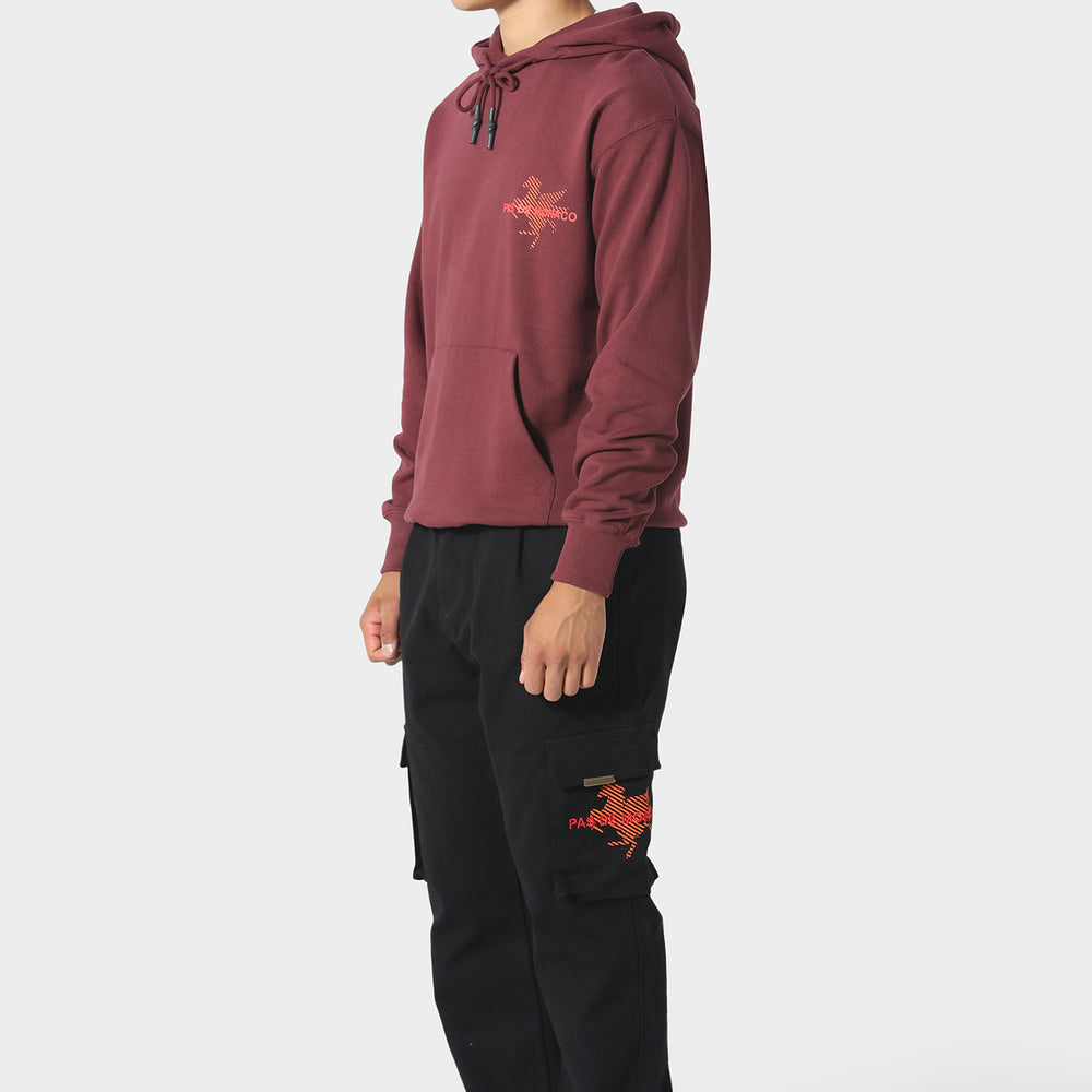 Constructed from heavyweight 450 GSM loopback cotton, the La Pegaus Chevron Hoodie showcases a striking pegasus motif rendered in a mix of HD and screen print. The dynamic design wraps front to back, adding bold energy to the clean silhouette. Finished with ribbed trims and a classic kangaroo pocket.