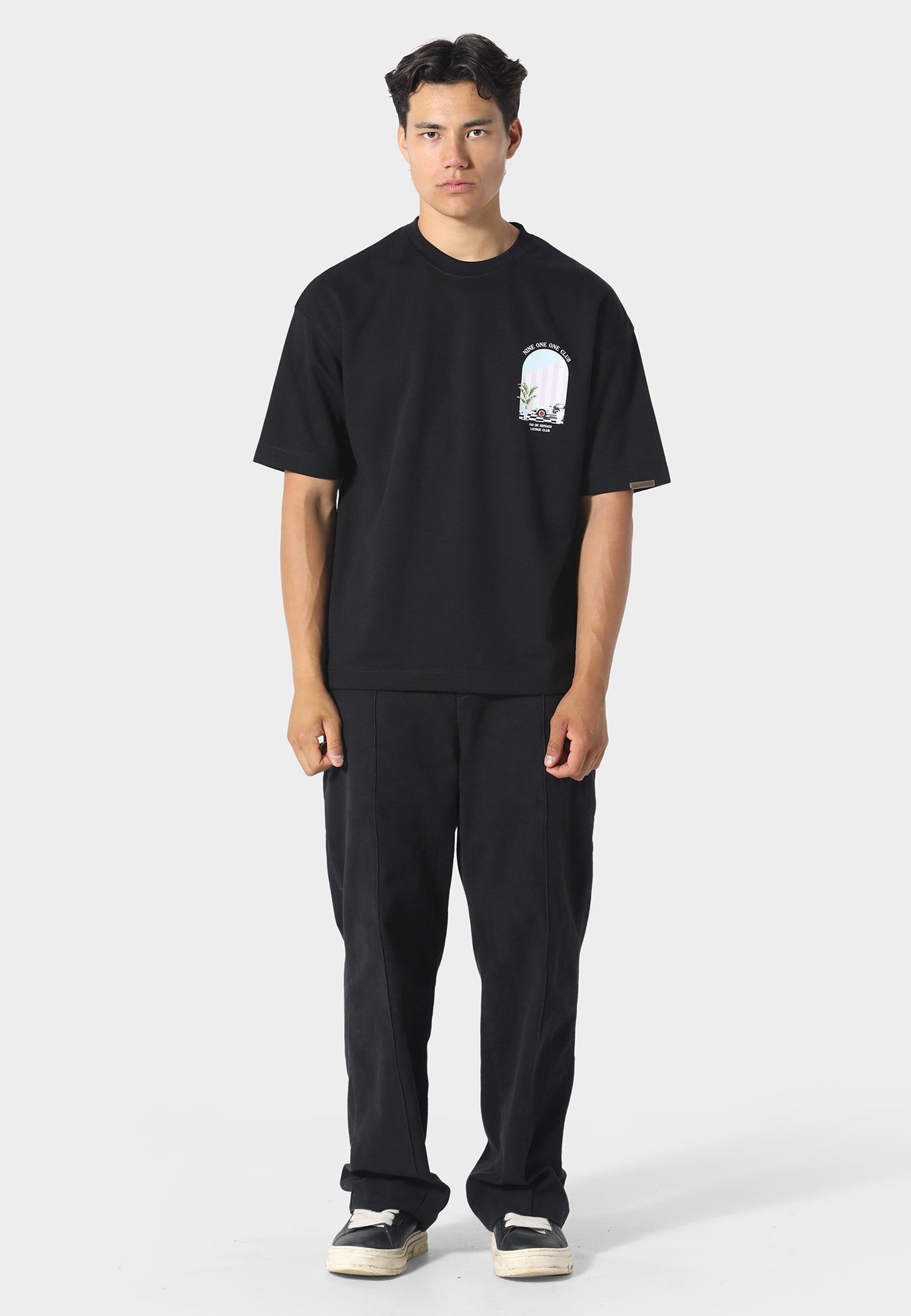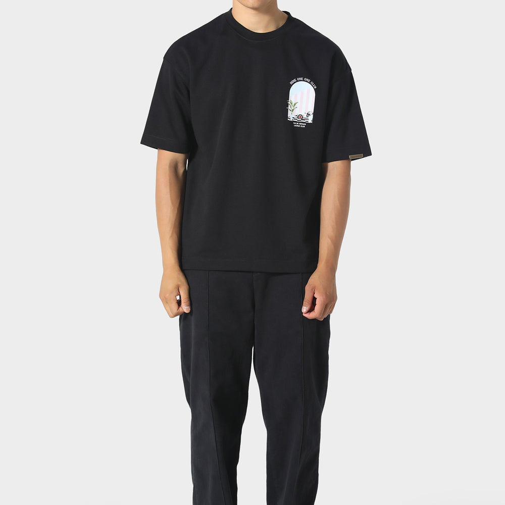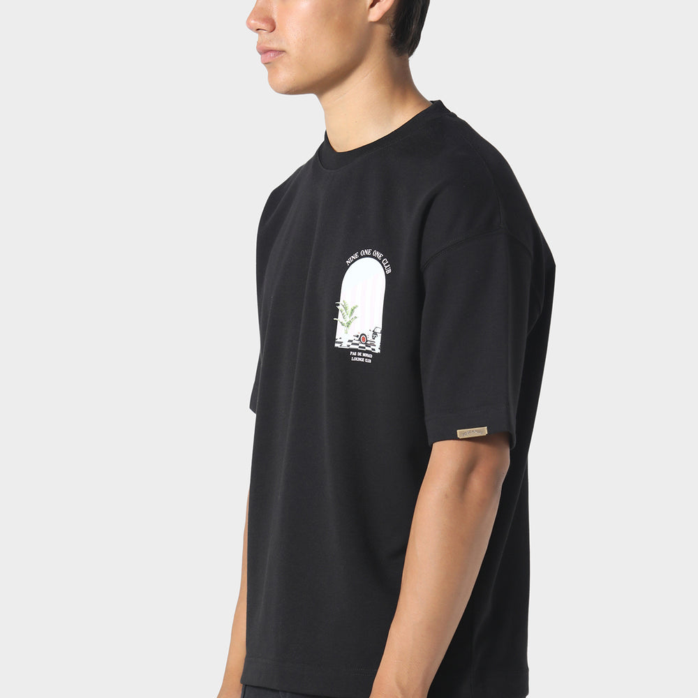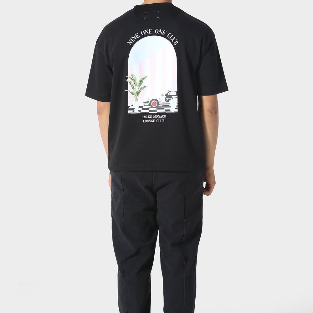 Constructed from 240 GSM interlock cotton, the 911 Club T-Shirt offers a clean silhouette grounded in premium comfort. Featuring vibrant screen-printed graphics on the front and back that blend pastel tones with race-inspired scenery, it captures a retro lounge aesthetic with modern precision. Finished with signature metal sleeve branding.
