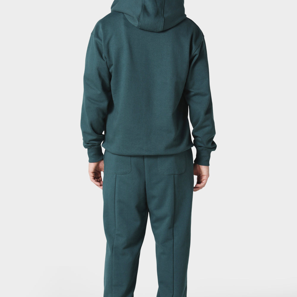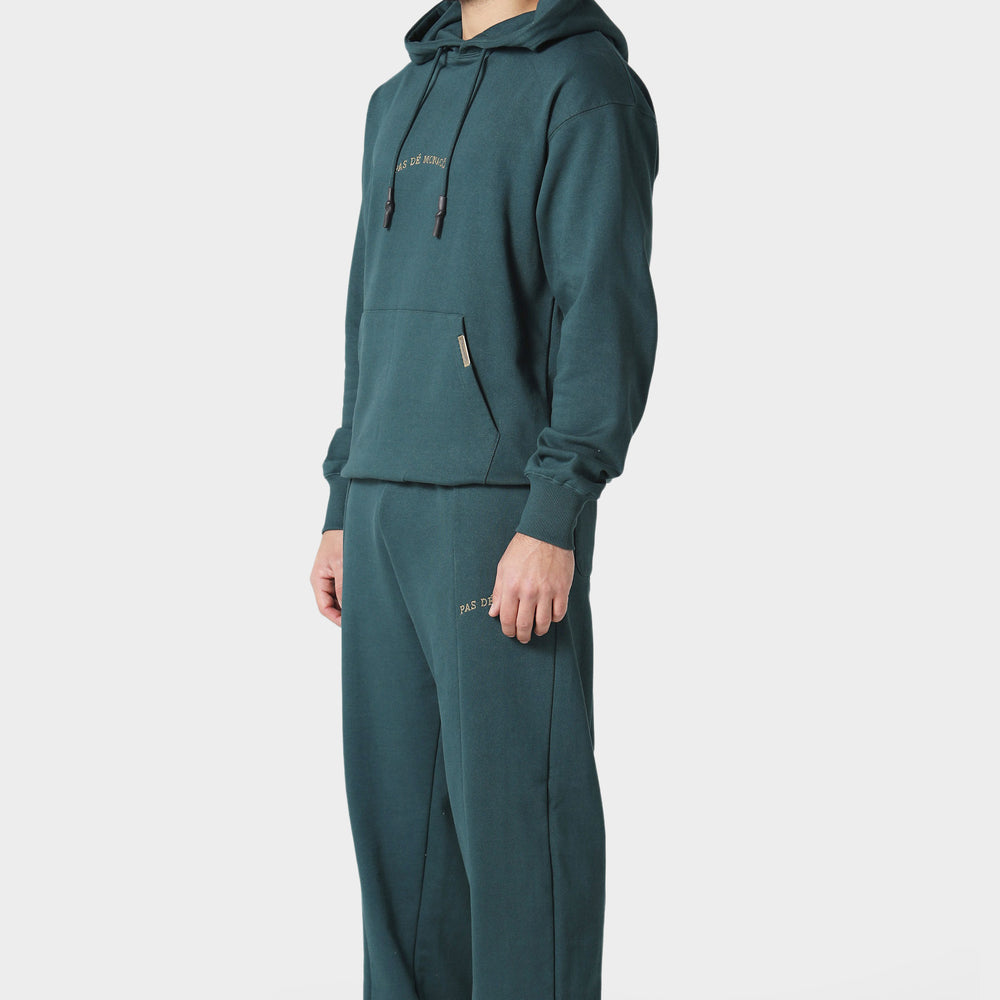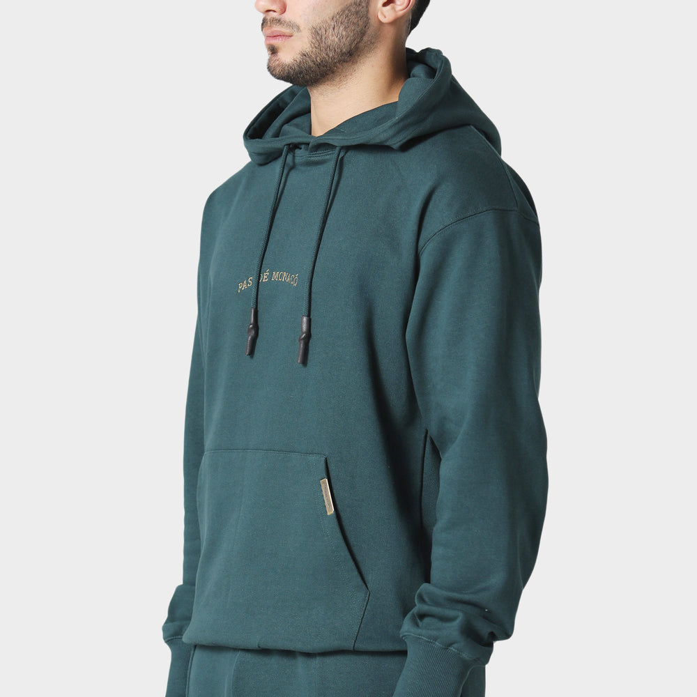 Crafted from heavyweight 450 GSM loopback cotton, the Broderie Hoodie delivers a structured fit with elevated comfort. A chain-stitched logo arcs across the chest, adding textured detail to the minimalist silhouette. Finished with a tonal metal badge, matte drawcord tips, and ribbed trims, it’s a refined take on everyday style.