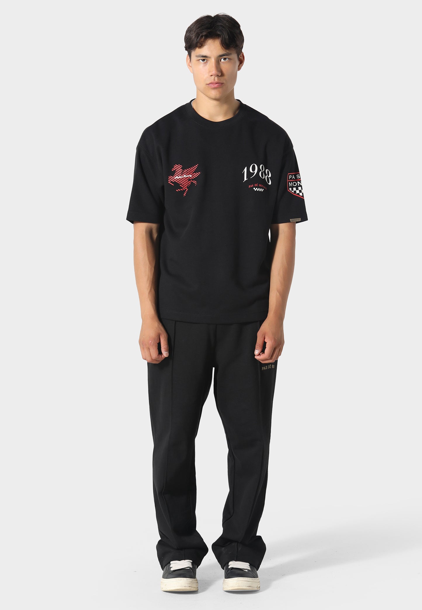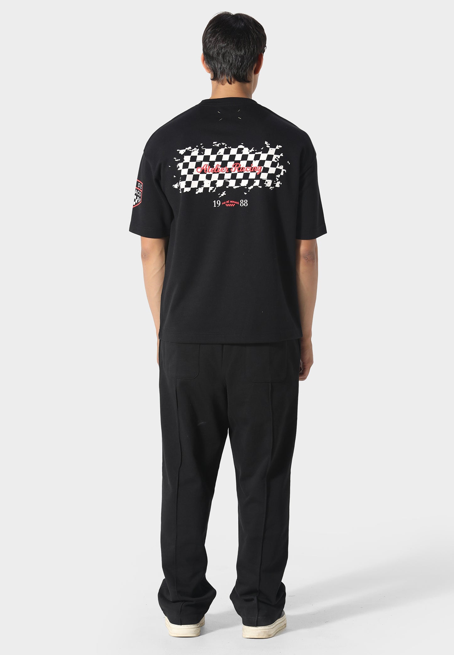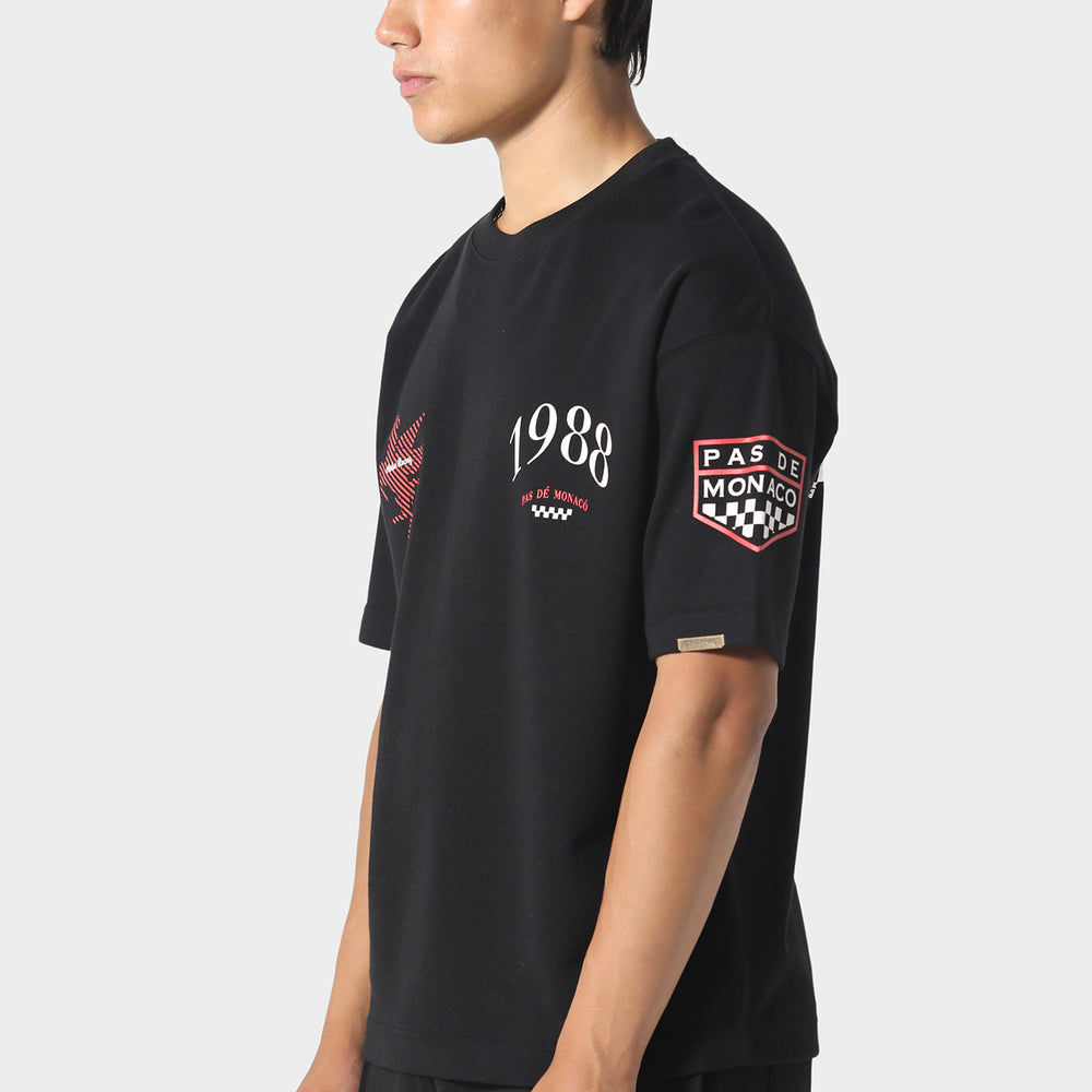 A bold nod to motorsport heritage, the Circuit '88 T-Shirt is crafted from 240 GSM interlock cotton for a structured yet breathable fit. Featuring screen and puff print graphics across the chest and sleeve, with a large flag-inspired graphic on the back, it fuses race-driven aesthetics with premium construction. Finished with our signature metal sleeve branding.