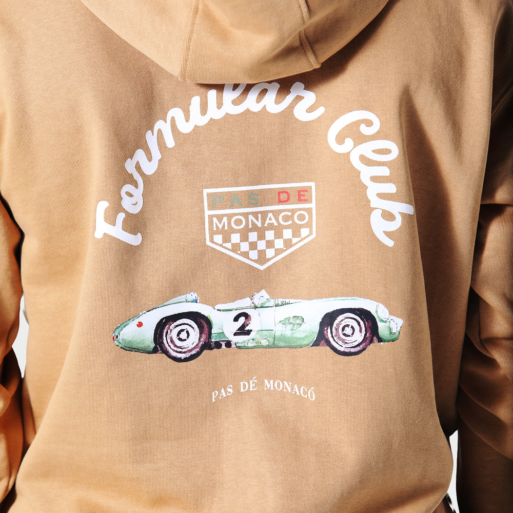 Crafted from heavyweight 450 GSM loopback cotton, the Formular Club Hoodie blends classic motorsport style with premium comfort. Features front and back graphics in a mix of screen and puff print, including a bold race car illustration and signature Pas De Monaco detailing. A modern silhouette inspired by vintage racing clubs.