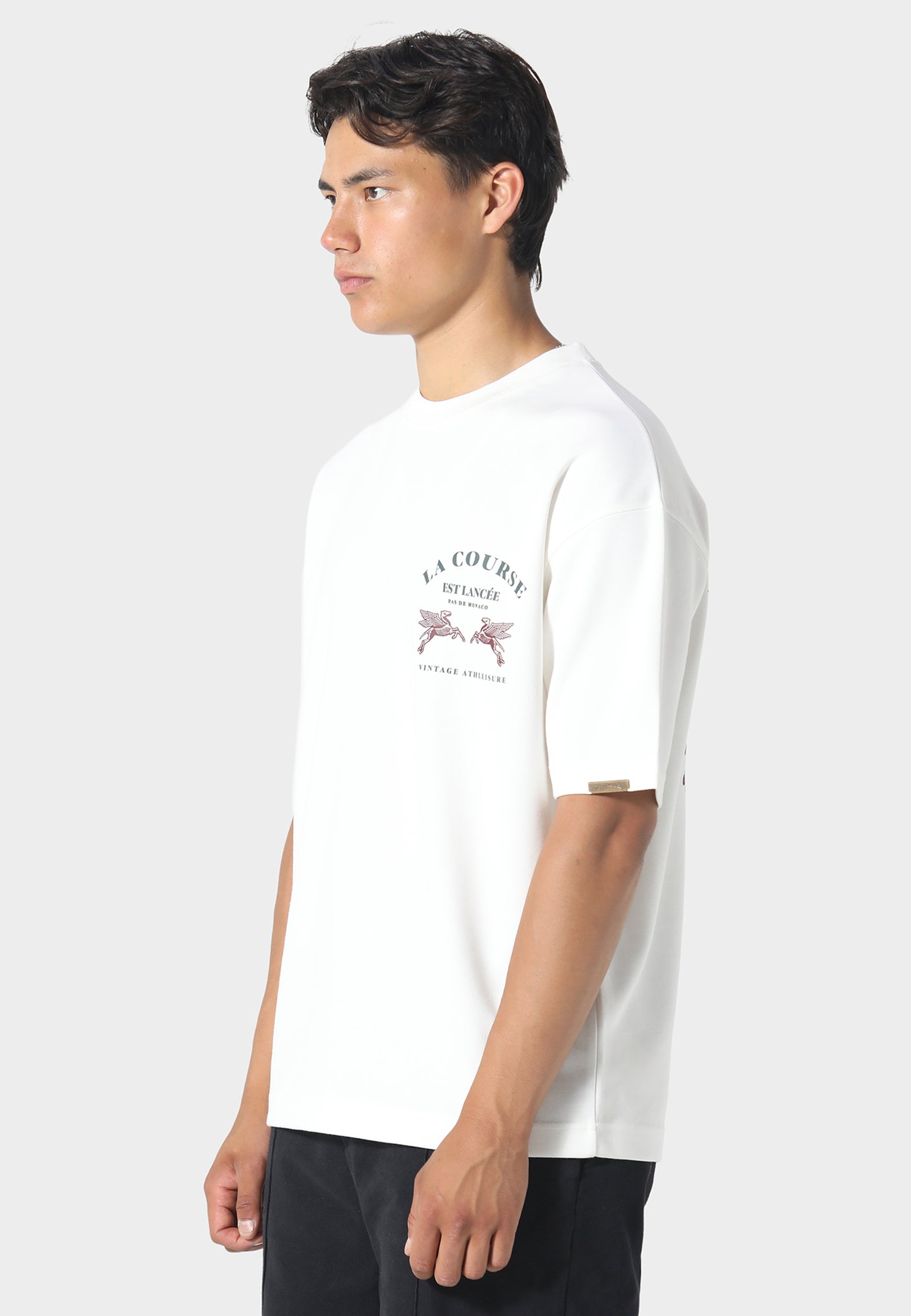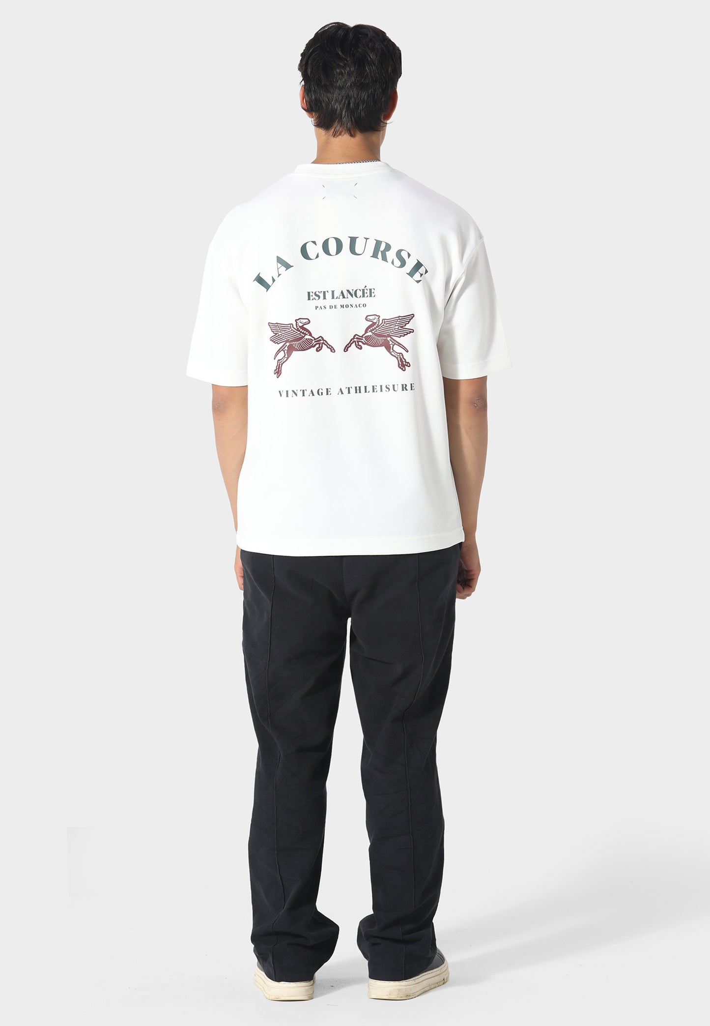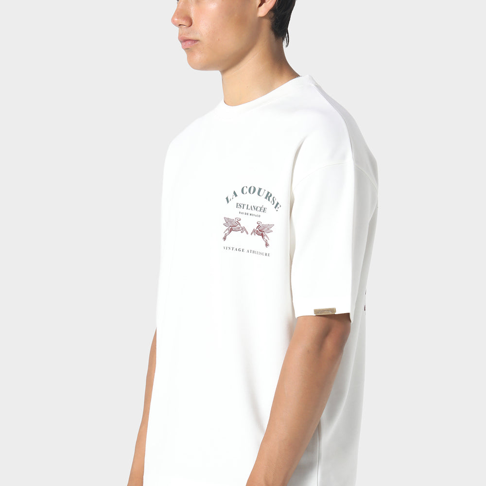 Crafted from premium 240 GSM interlock cotton, the Le Course T-Shirt blends vintage athleisure with modern construction. Featuring signature Pegasus graphics on the front and back, rendered in a mix of screen and high-definition (HD) prints, it captures a sense of motion and mythology. Finished with our signature metal sleeve branding.