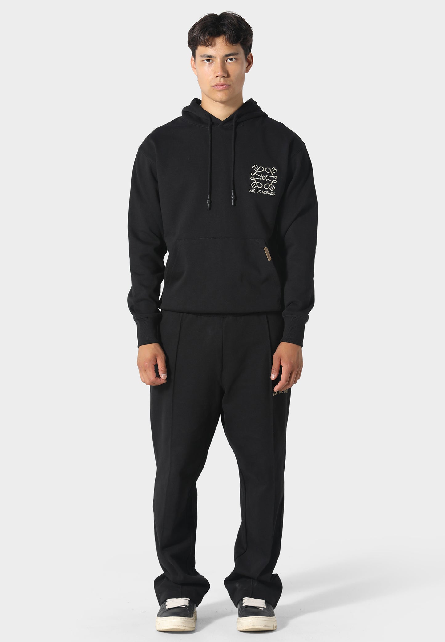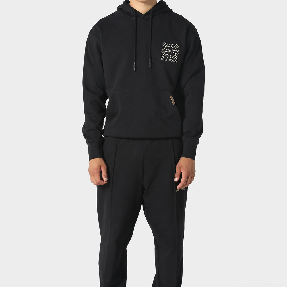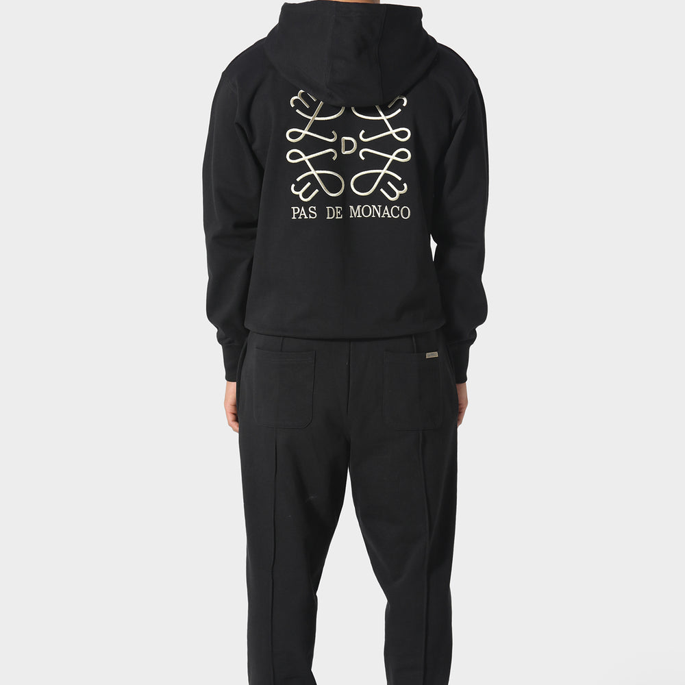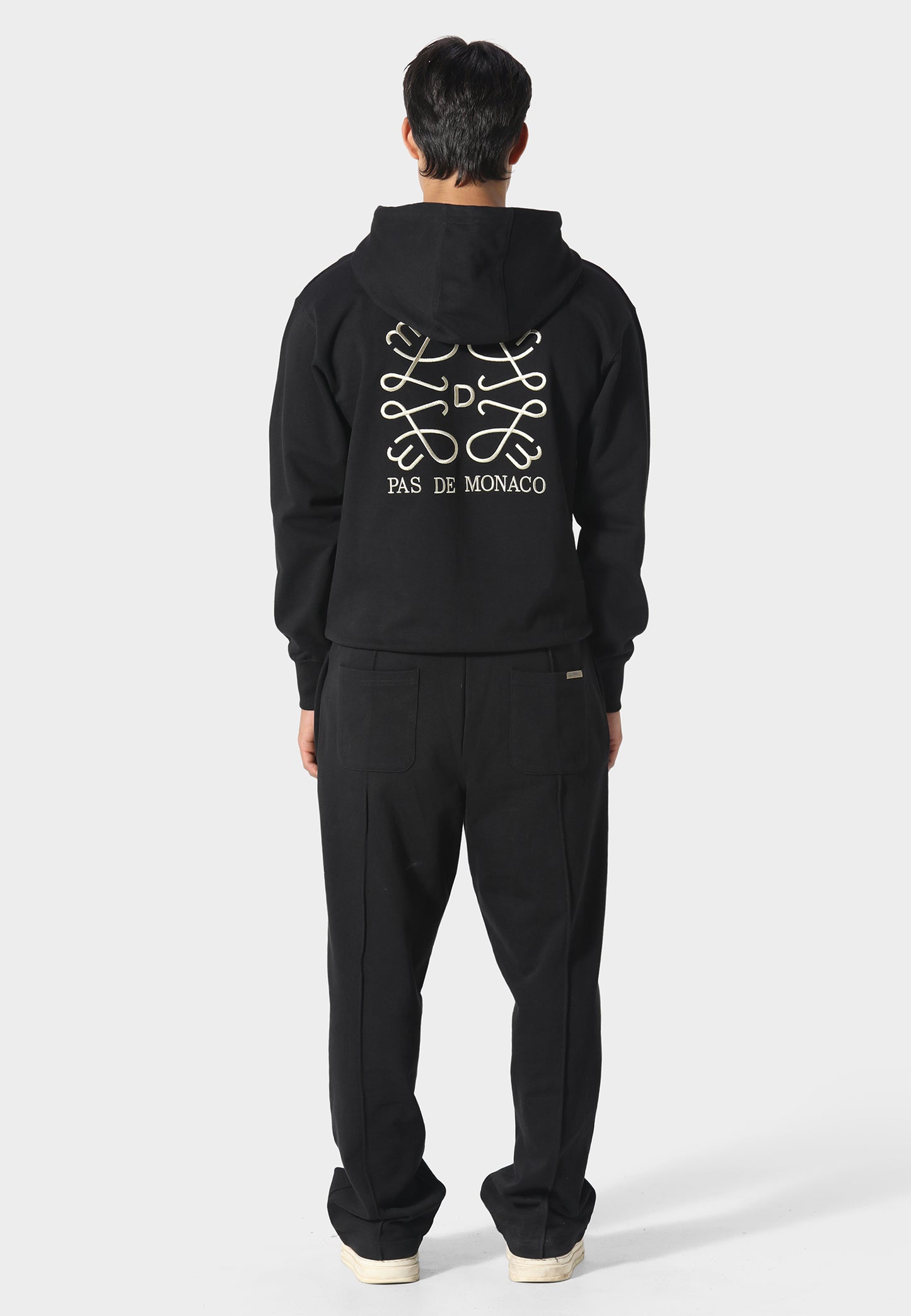 Crafted from 450 GSM loopback cotton, the Prestige Hoodie delivers heavyweight comfort with refined edge. Featuring an oversized embroidered crest logo on the front and back, it combines bold visual identity with premium texture. Finished with ribbed trims, a kangaroo pocket, and our signature metal branding.