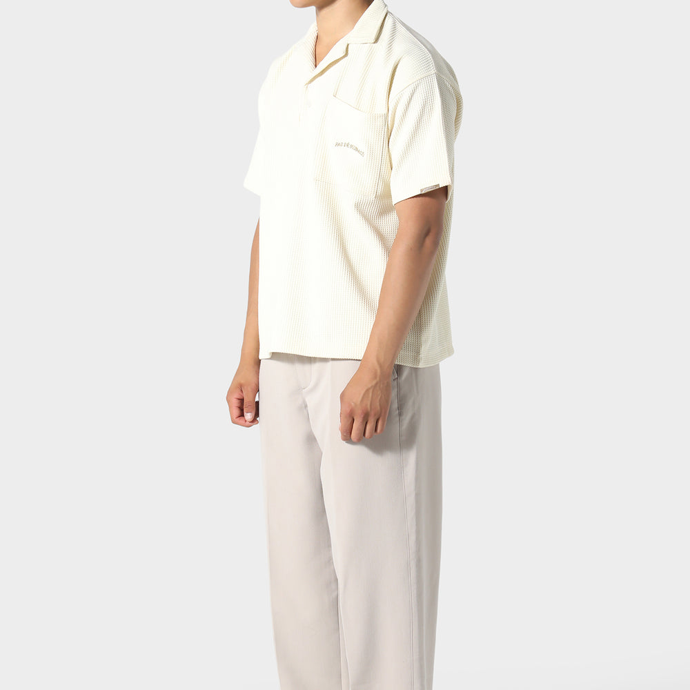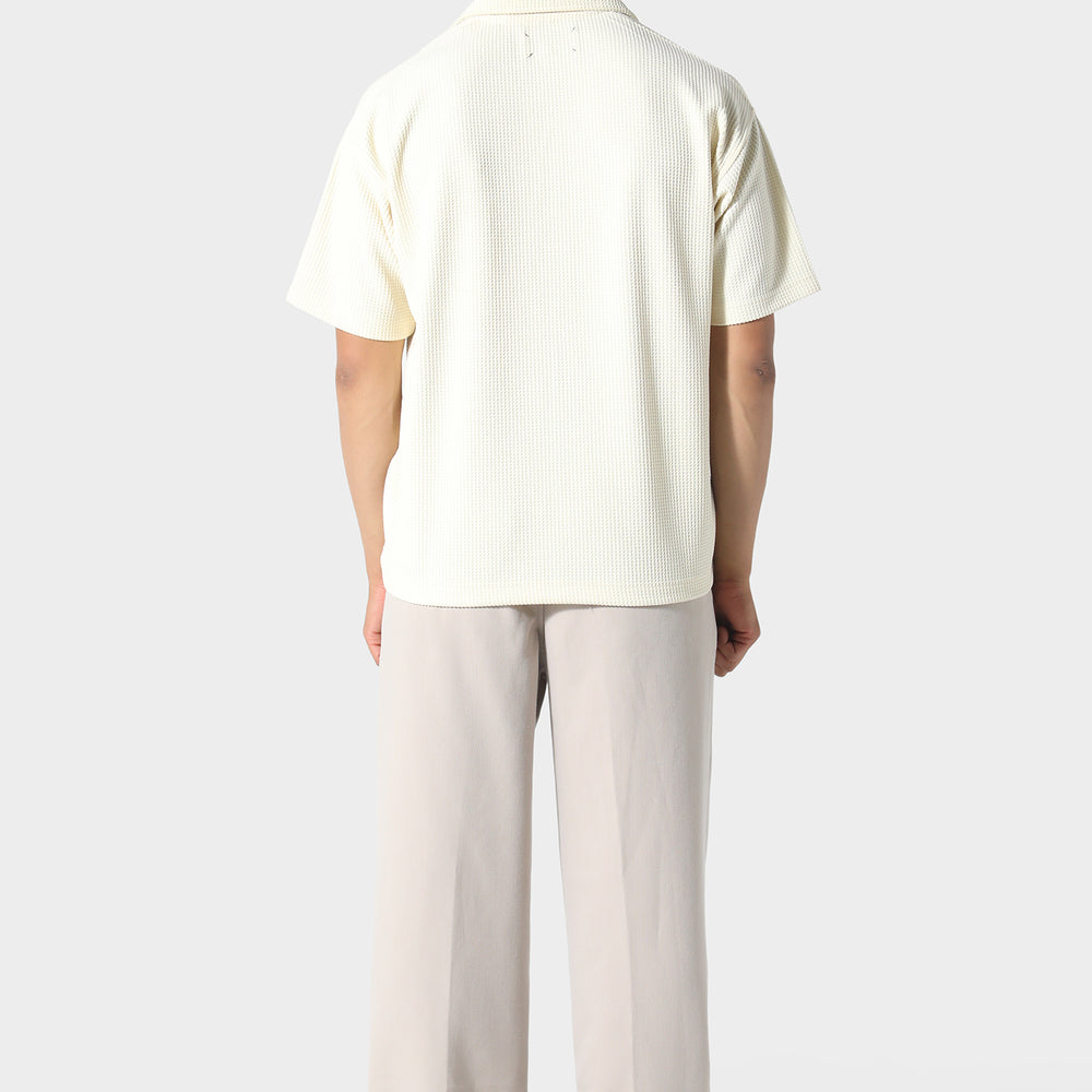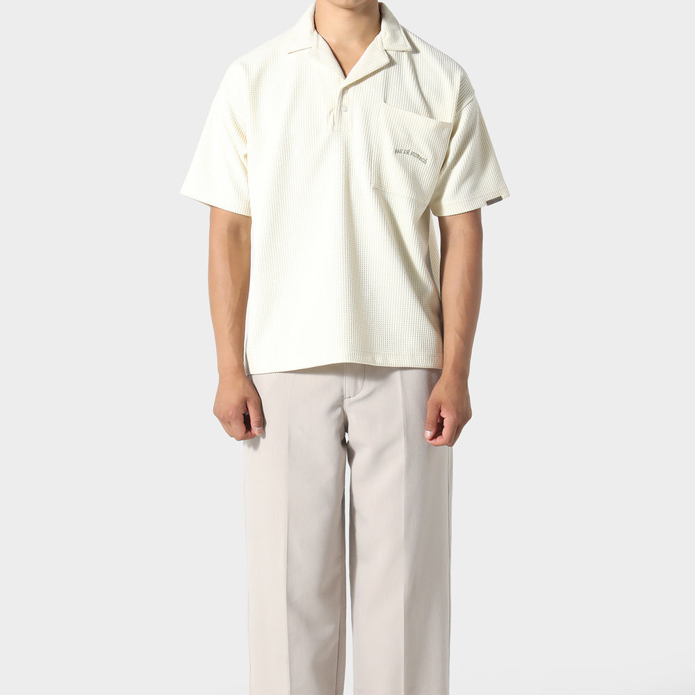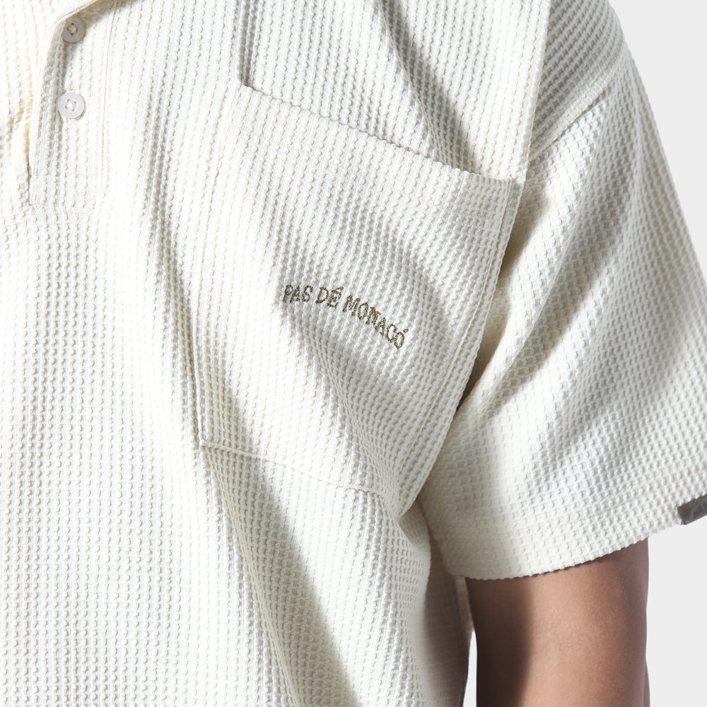 A modern essential with a tactile twist. The Waffle Polo is crafted from textured waffle-knit cotton for a relaxed drape and breathable comfort. Featuring a soft open collar, chest pocket, and tonal embroidery, it balances laid-back structure with refined minimalism.