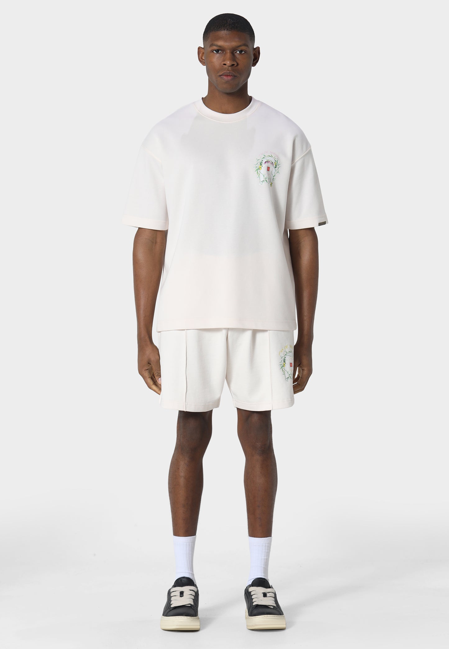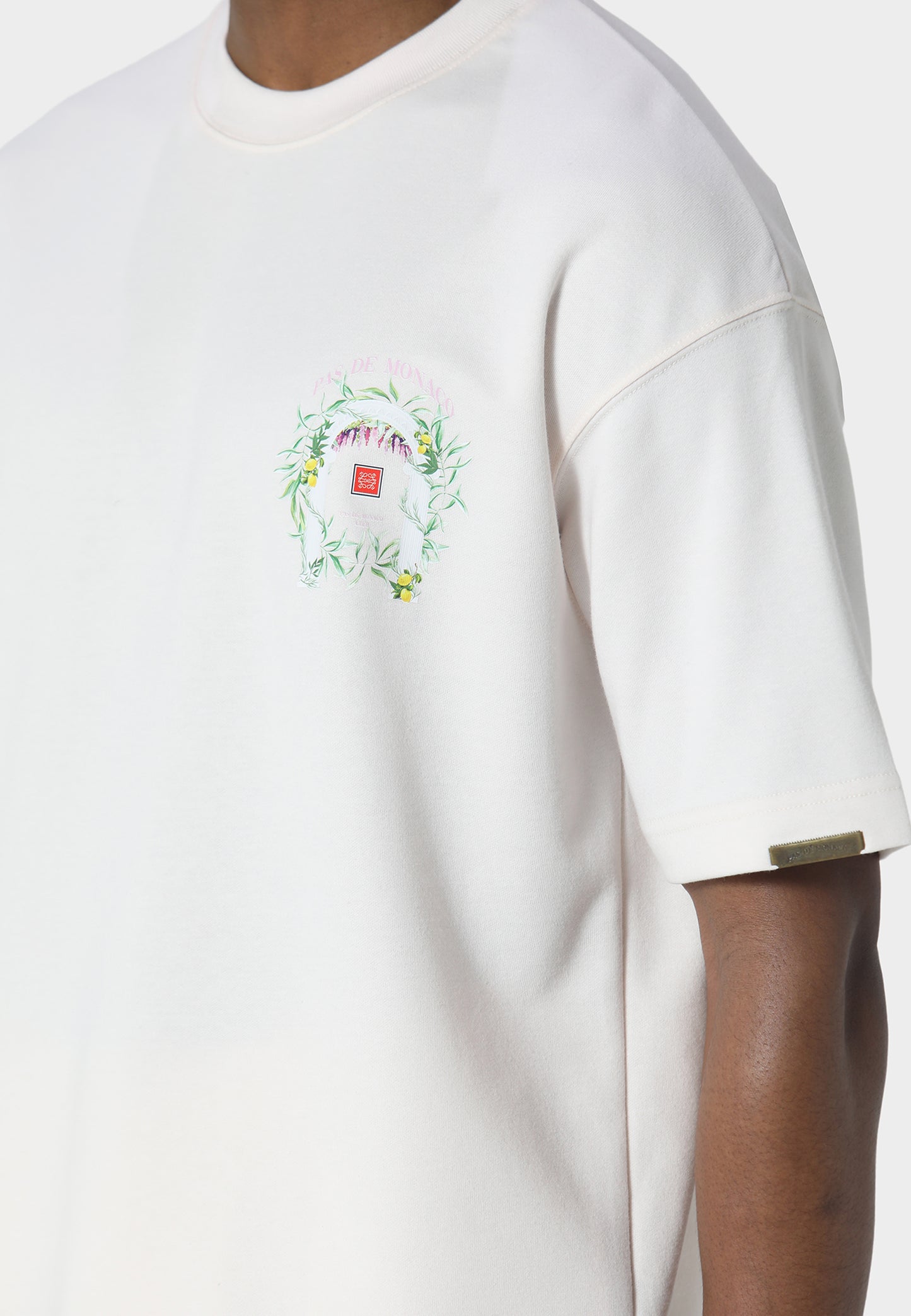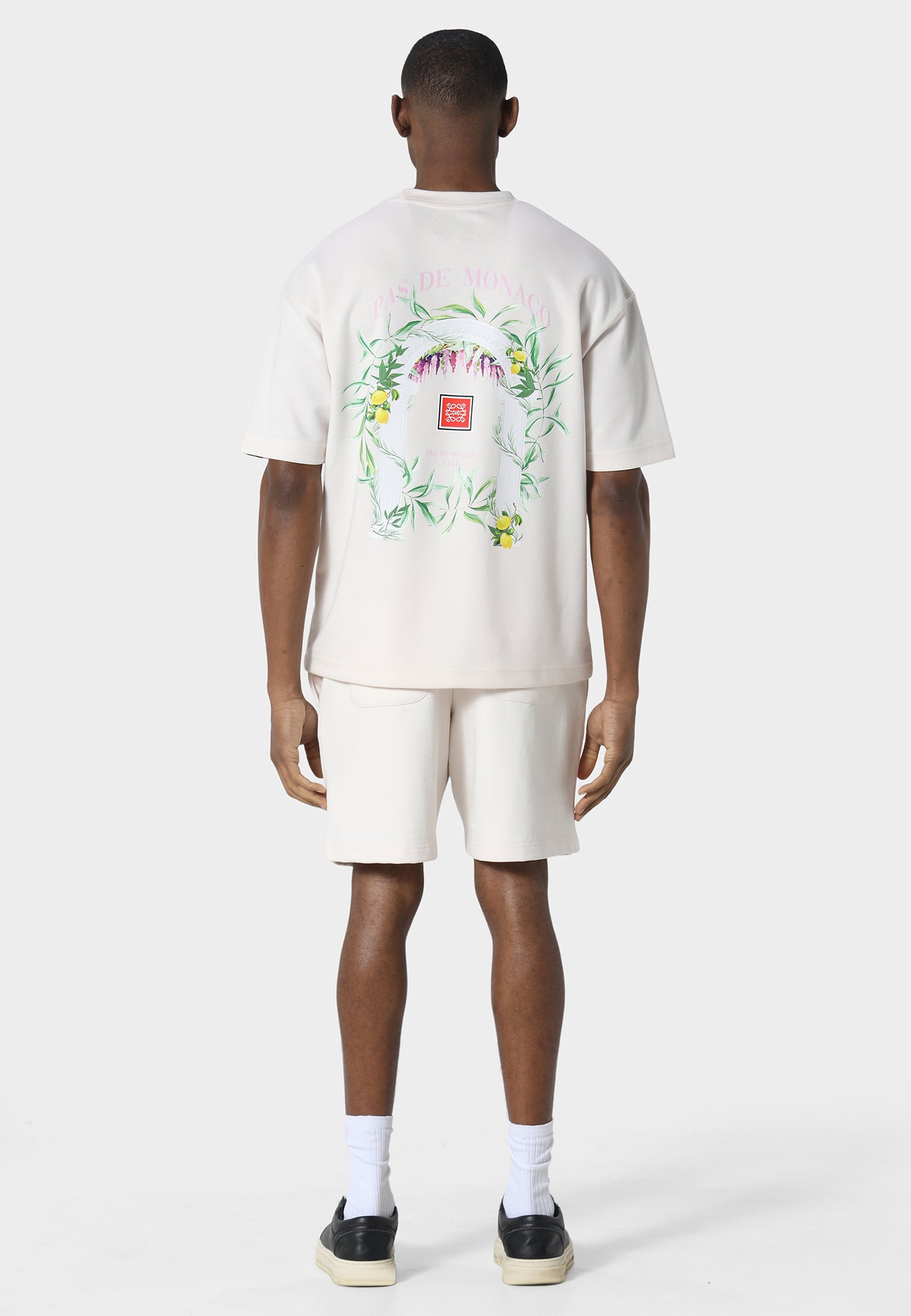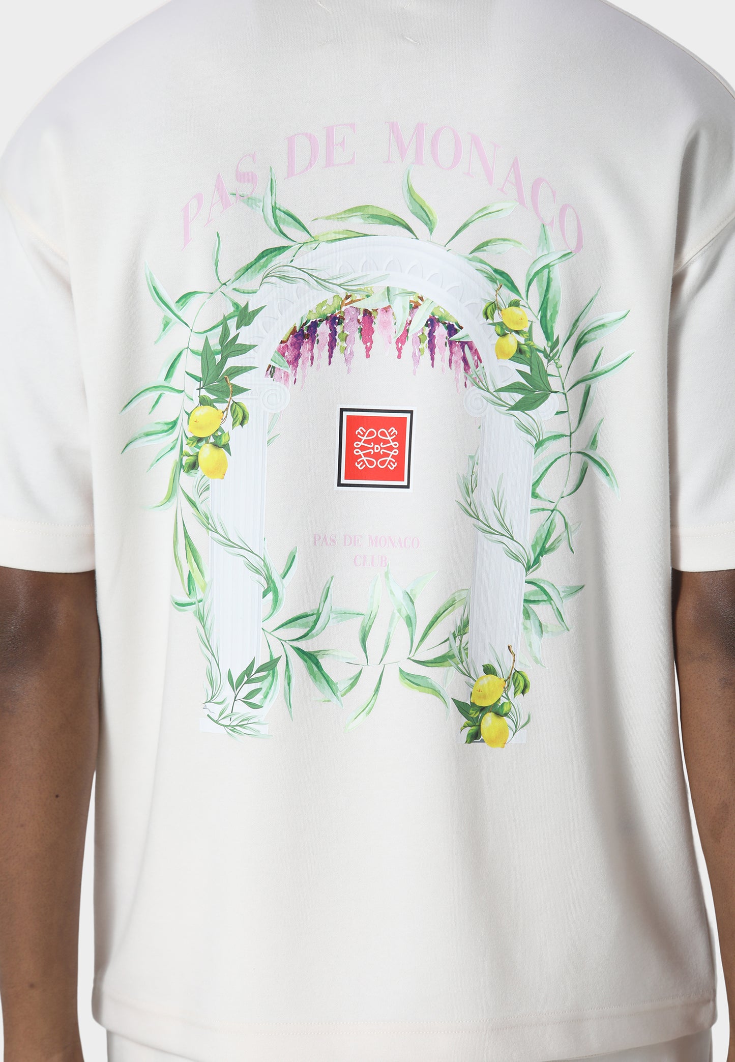 The Arche Slightly Pink T-Shirt is cut in an oversized fit and crafted from 240 GSM interlock fabric for a structured yet comfortable feel. Featuring a refined front chest graphic and a large back print inspired by classical arches and Mediterranean greenery, it blends artful detailing with everyday wearability. Finished with Pas De Monaco’s signature metal sleeve badge detail.