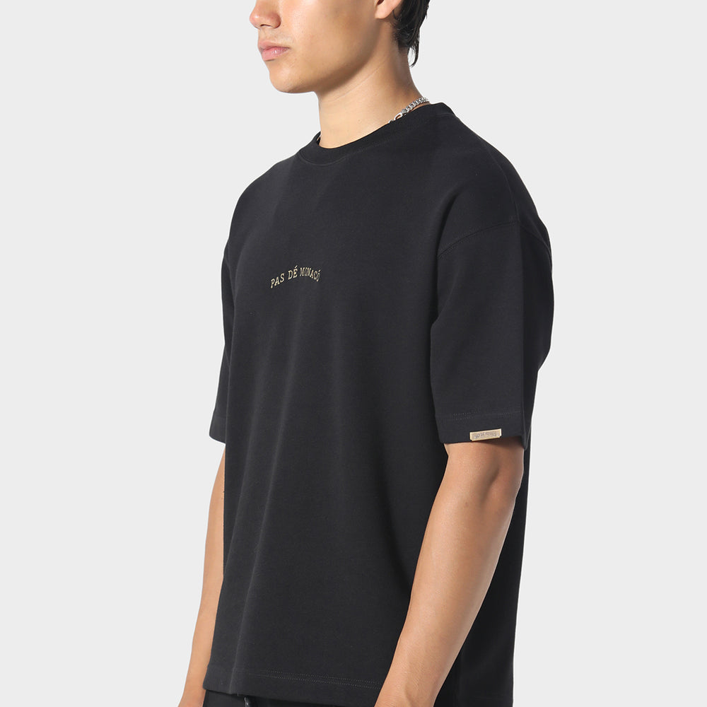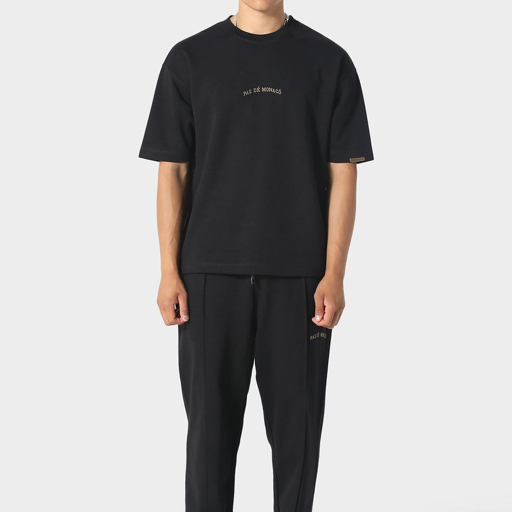Effortlessly refined, the Broderie T-Shirt by Pas De Monaco blends luxury with modern simplicity. Crafted from 240 GSM interlock fabric for a soft yet structured feel, this oversized tee features an embroidered chest logo, short sleeves, and a metal badge sleeve detail for a touch of understated elegance. Perfectly versatile, it’s a timeless staple that elevates everyday style with effortless sophistication.