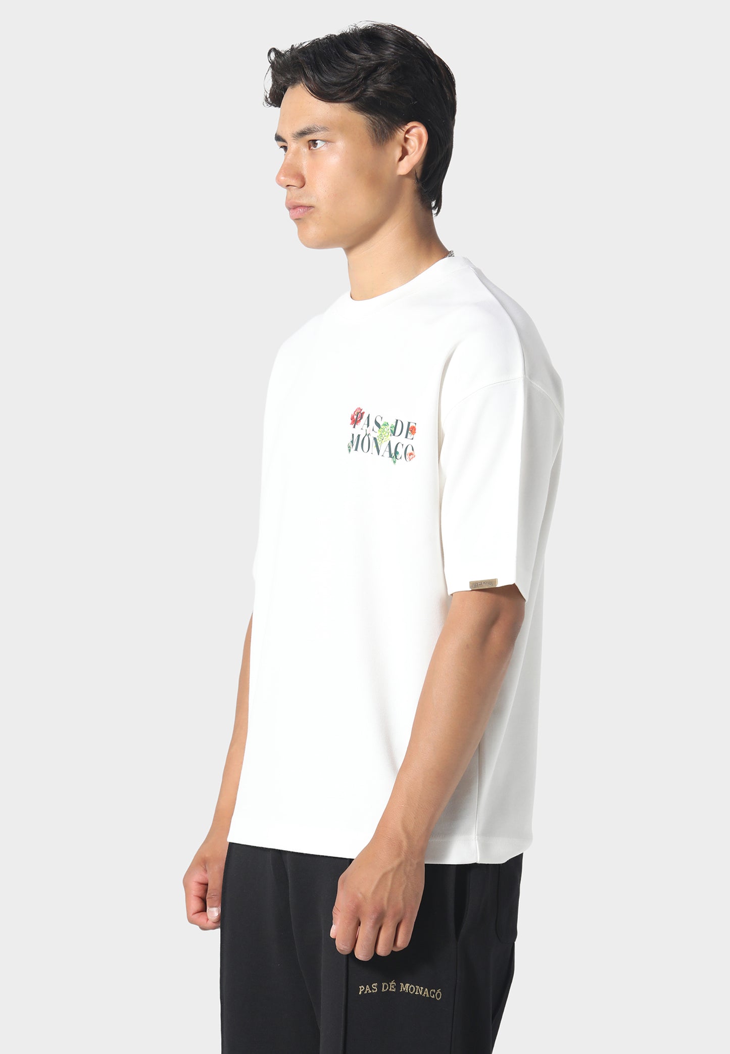 Where artistry meets effortless style, the Florale T-Shirt by Pas De Monaco transforms a wardrobe staple into a statement piece. Crafted from 240 GSM interlock fabric, this oversized tee offers a luxurious drape and superior comfort. The floral print detail on the front and back adds a bold yet elegant touch, while the metal badge sleeve detail reinforces the brand’s signature refinement. With its short sleeves and premium construction, this t-shirt is the perfect balance of modern sophistication and expressive design.