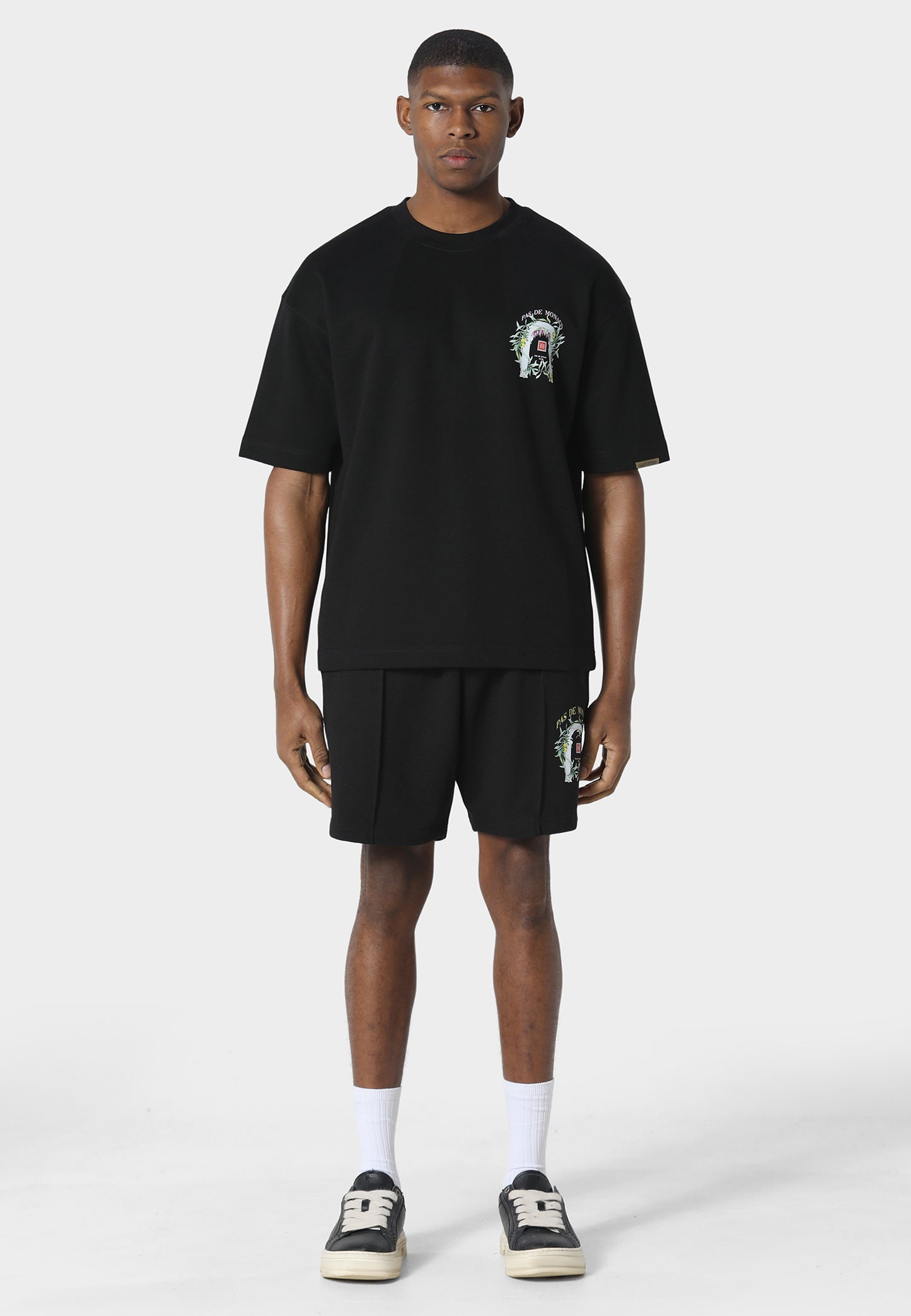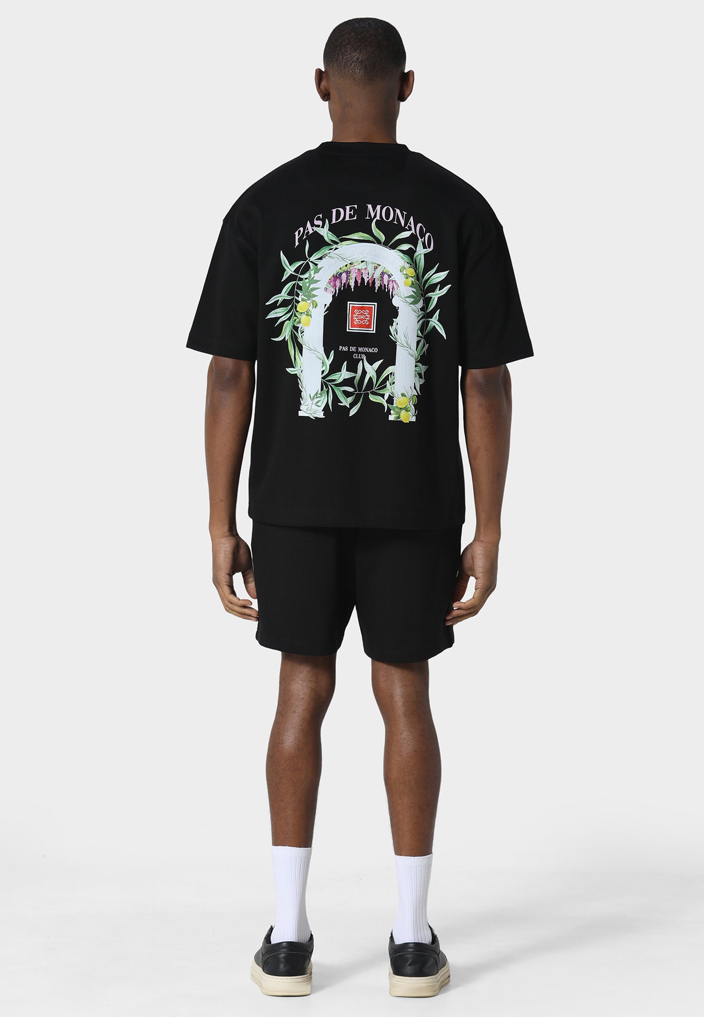 A relaxed essential designed to pair seamlessly with the Arche T-Shirt, the Cascade Jog Shorts are crafted from heavyweight 450 GSM loopback cotton for structure, comfort, and durability. Cut in a relaxed fit, they feature a screen-printed graphic on the leg inspired by classical arches and Mediterranean greenery. Finished with clean construction and a comfortable everyday silhouette, they blend elevated casualwear with the refined visual language of Pas De Monaco.